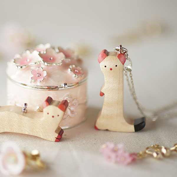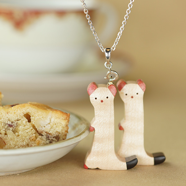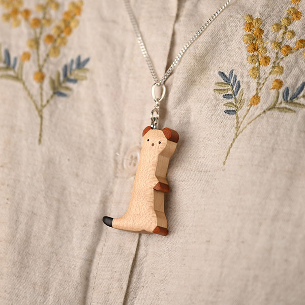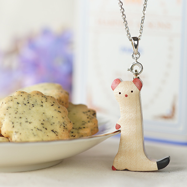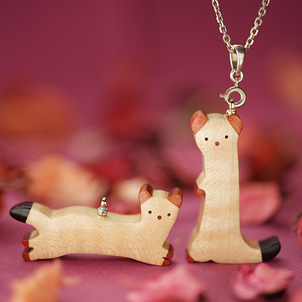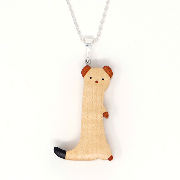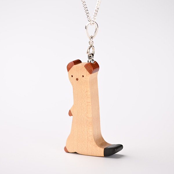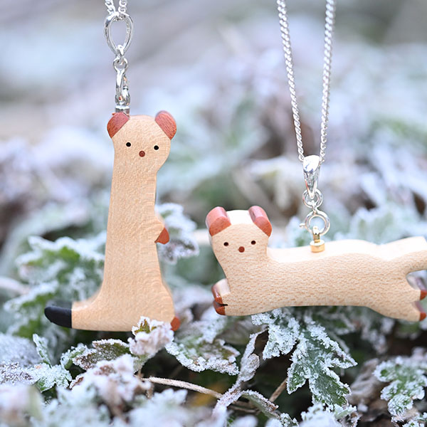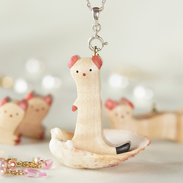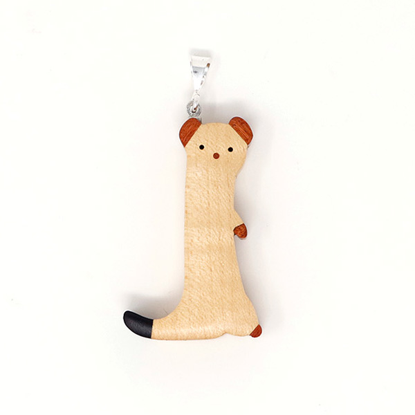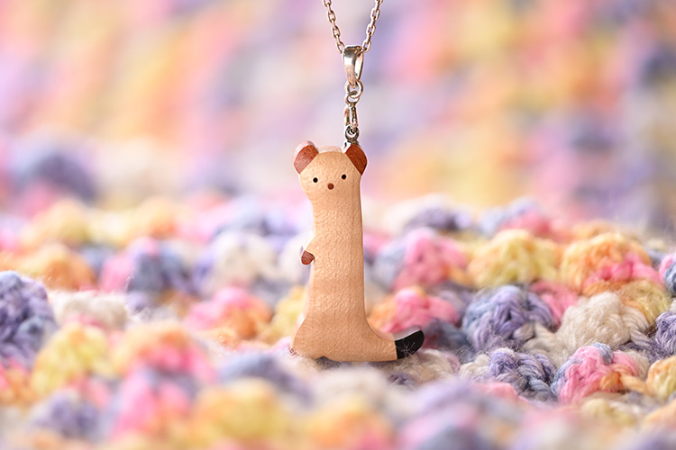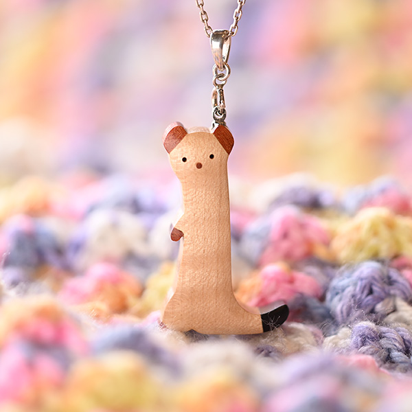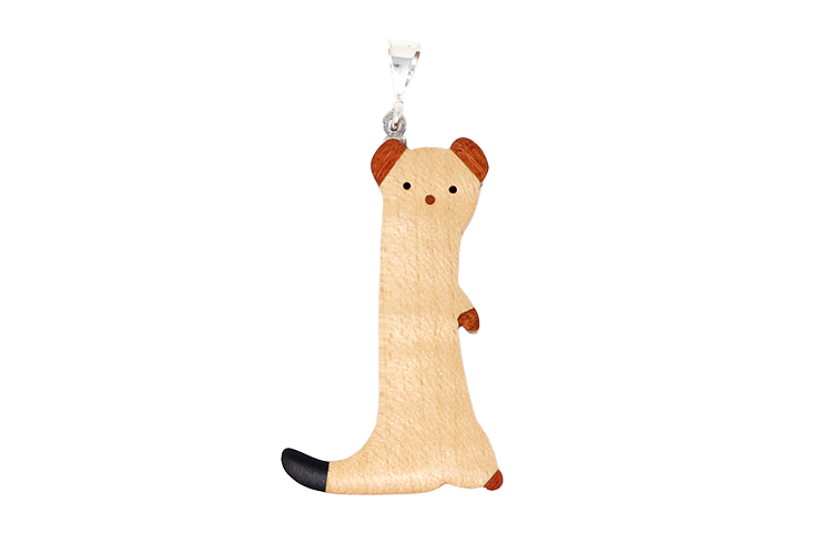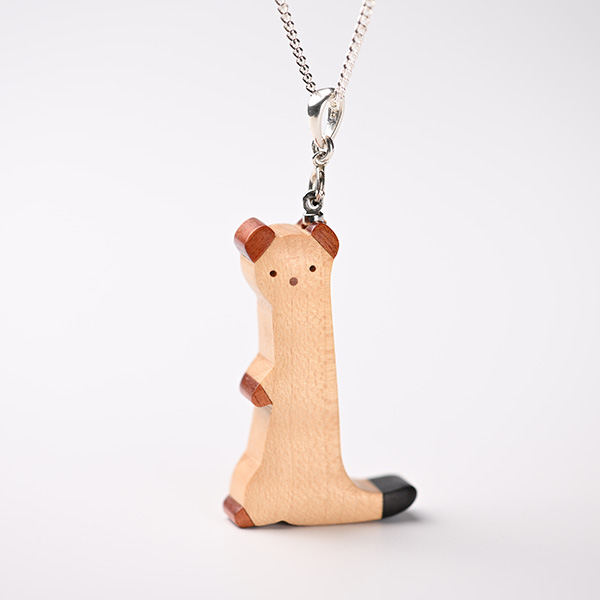 世界の希少な木材を組み合わせて作ったオコジョのペンダントトップ。