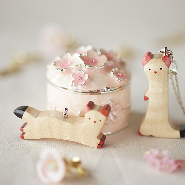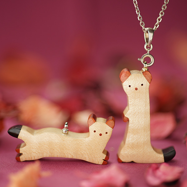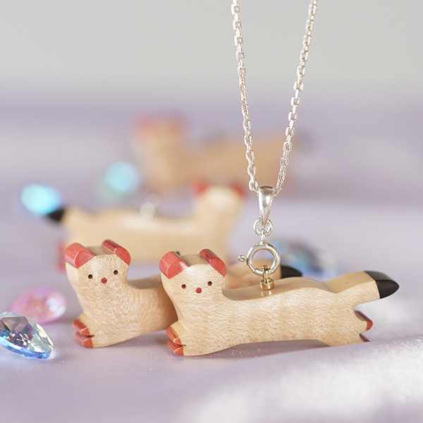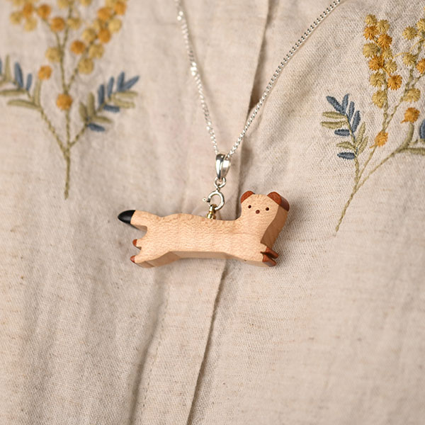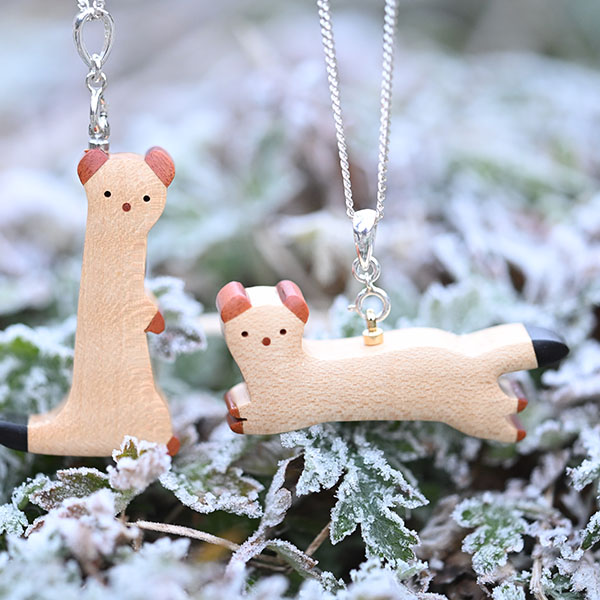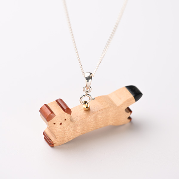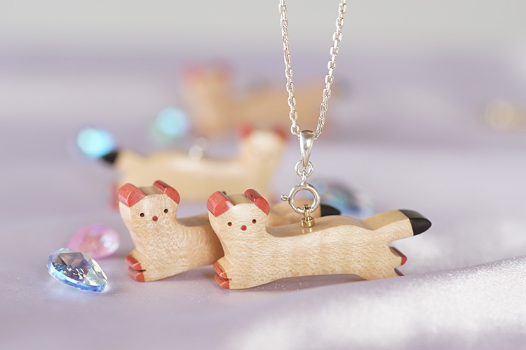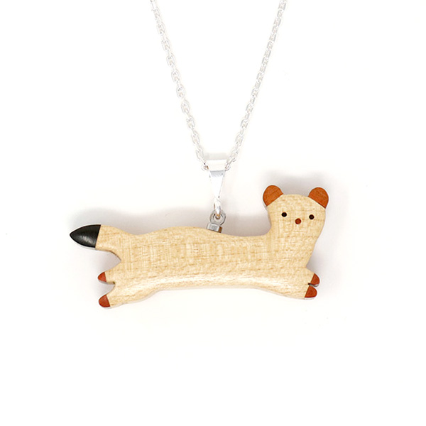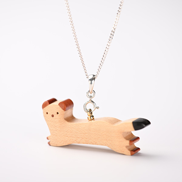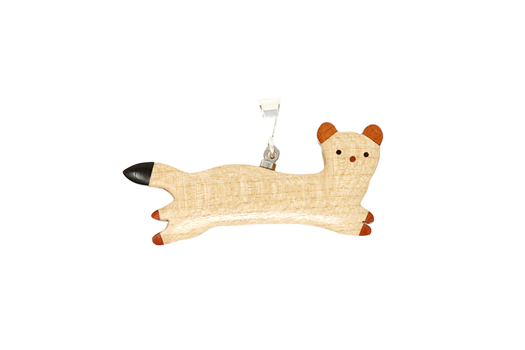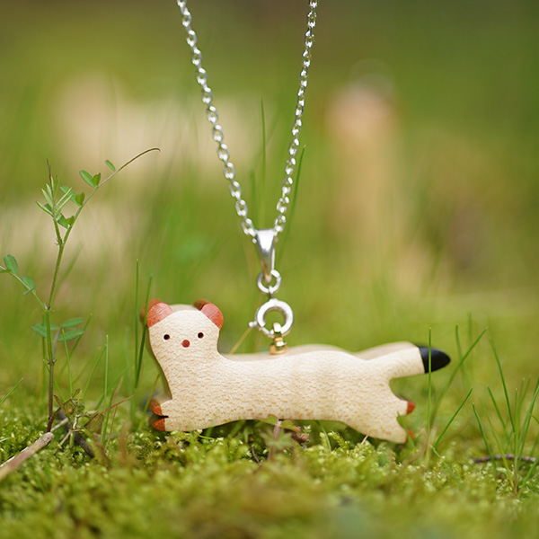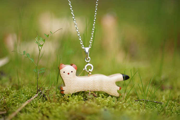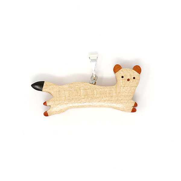 世界の希少な木材を組み合わせて作ったオコジョのペンダントトップ。